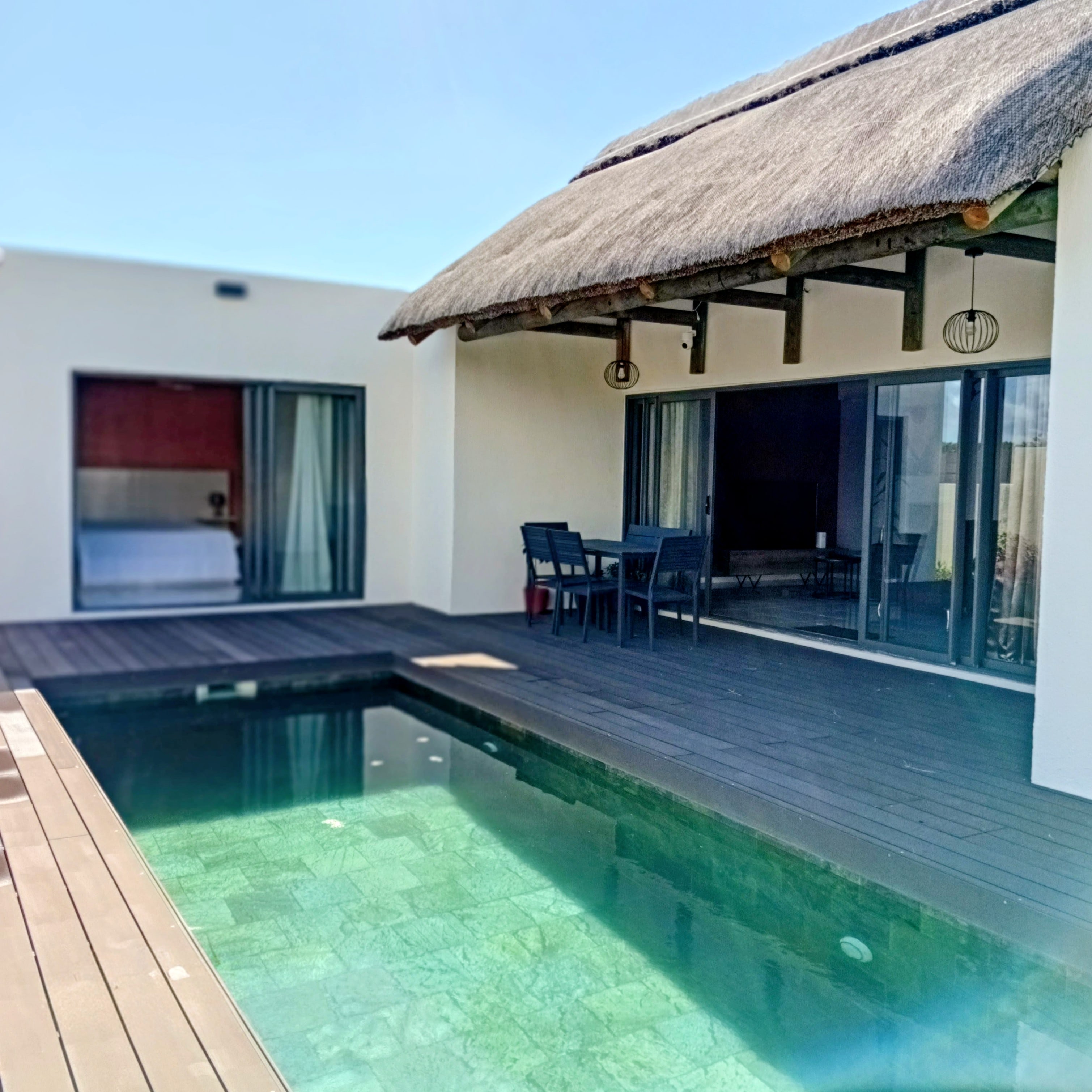 Discover this true haven of peace located in Calodyne, within a secure gated community. This single-story villa combines modernity, comfort, and absolute privacy, with no overlooking neighbors. ✅️ VILLA HIGHLIGHTS: ▪️ Living Area: A living room and dining room bathed in natural light, opening onto the outdoors and the swimming pool. ▪️ Kitchen: A modern and fully equipped kitchen for culinary enthusiasts. ▪️ Sleeping Area: 3 spacious bedrooms, including a master suite. An additional bathroom completes the sleeping area. ▪️ Exterior: A meticulously landscaped garden surrounds a magnificent private pool and a large terrace, ideal for entertaining or relaxing. ▪️ Parking: Space for 2 vehicles. 📍 PRIME LOCATION: Enjoy the North Coast! The villa is just a 10-minute walk from Grand Gaube Beach. A strategic location combining residential tranquility with immediate access to the lagoon. 💰 Price: Rs 12,300,000 👉 NOTE ON ADDITIONAL FEES: + Registration Fee: 5% + Agency Fee: 2% + VAT + Notary Fees (to be expected) 📞 Contact Marie today to arrange a private viewing! 📞 +230 5456 4260